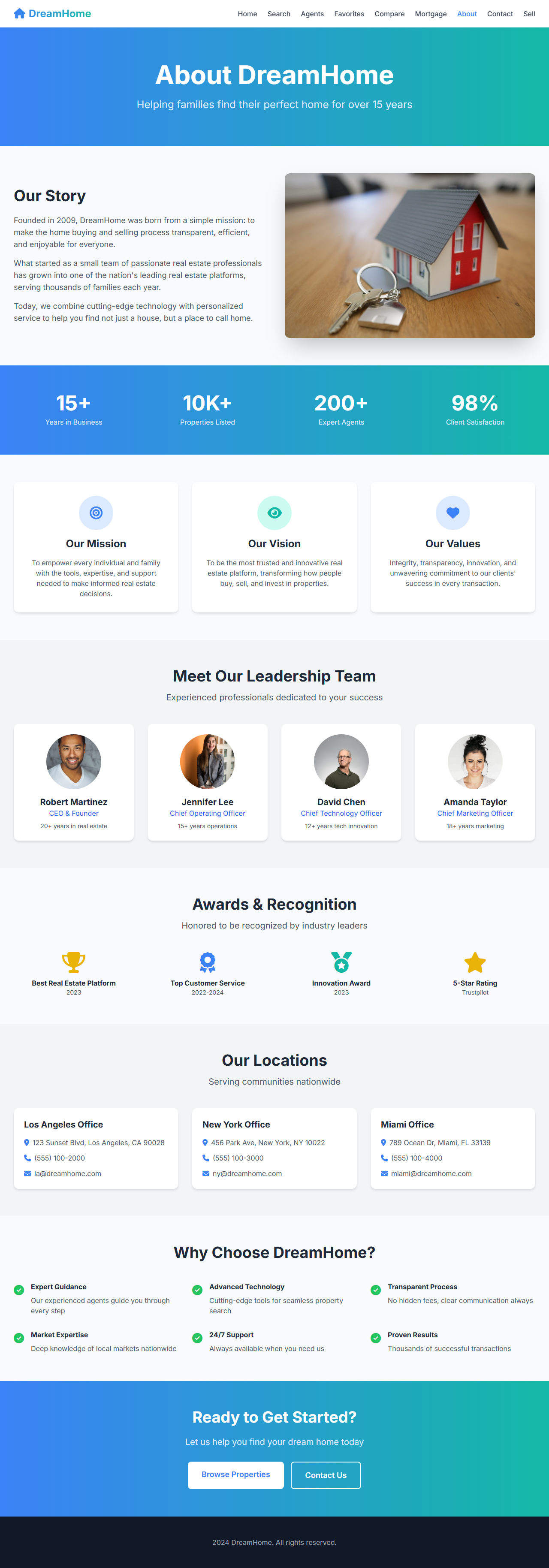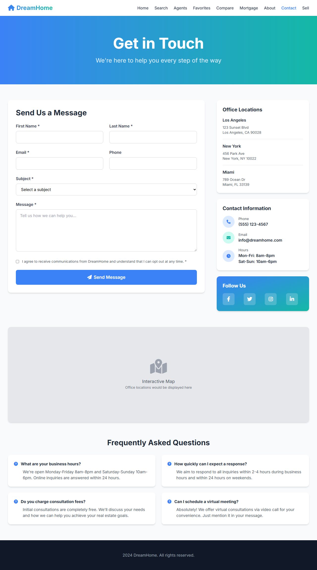 A real estate company was losing potential buyers to competitors with modern online platforms. Their outdated website had poor mobile experience, slow property search, no virtual tours, and manual lead management. Agents spent hours answering basic questions instead of closing deals. The company was missing 40% of online leads due to delayed responses and lacked data on buyer preferences.